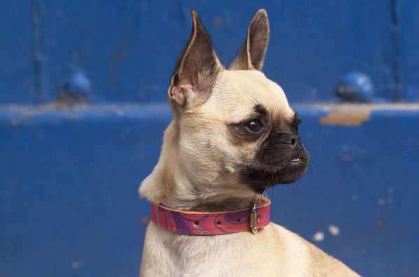 A bit different ? If you're looking for a traditional hand stitched leather collar & with a twist, choose an Absurd Design marble patterned leather dog collar.
