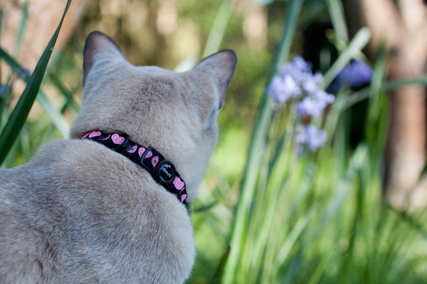Designed for the most active cat. These upcycled neoprene cat collars are designed to be barely noticeable for your feline friend! Super lightweight with a quick-release breakaway safety buckle and with a slight stretch. These collars are brilliant for cats who love to spend their time on adventures, roaming the garden.